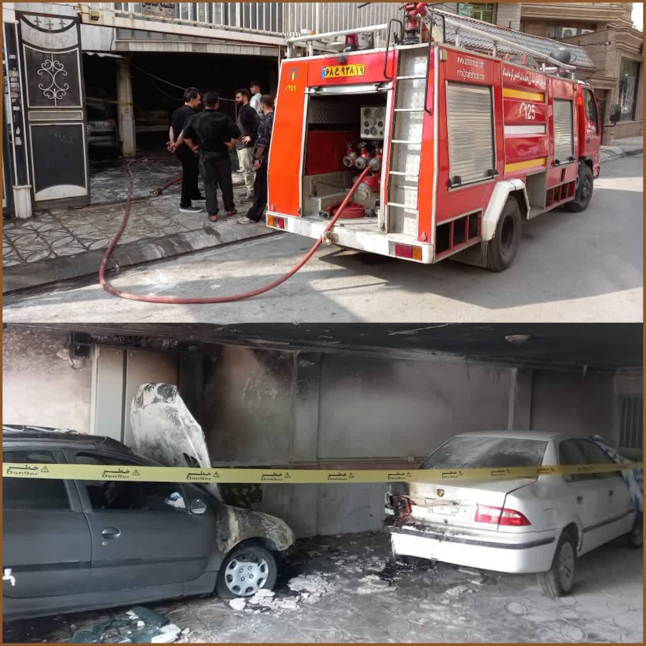 آتش سوزی دو دستگاه خودرو درون پارکینگ منزل مسکونی در کرمانشاه