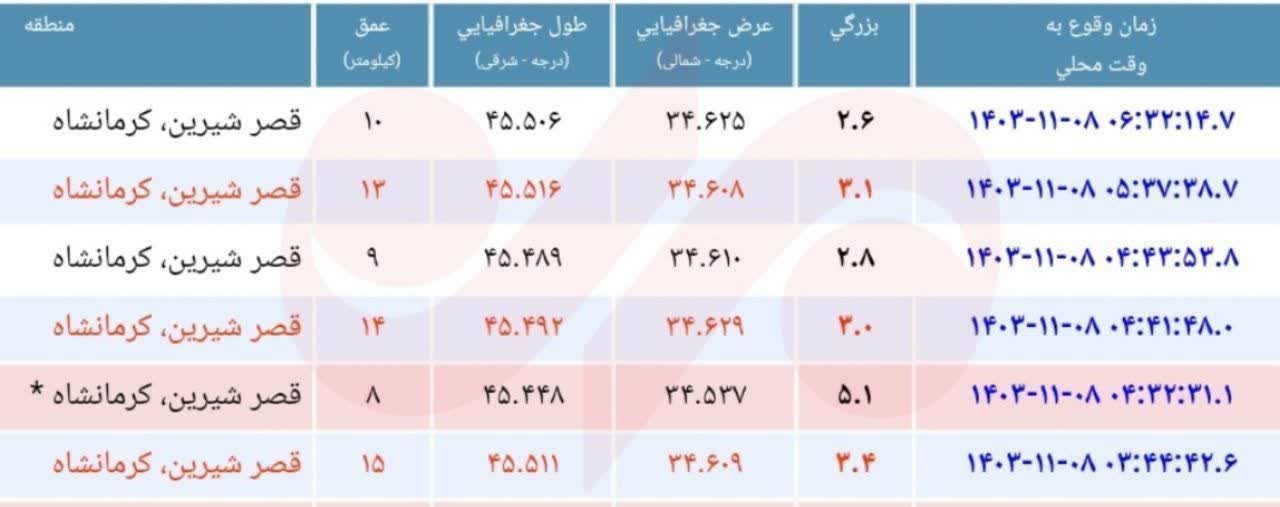 بزرگترین زلزله امروز به بزرگی ۵.۱ ریشتر ساعت ۴:۳۲ امروز در حوالی قصرشیرین رخ داد.