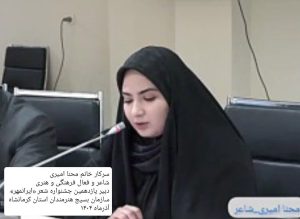 افشین آزادی گفت : شایان ذکر است دبیر این مرحله از جشنواره شعر سرکار خانم محنا امیری مسئول انجمن شعر سازمان بسیج هنرمندان استان ، شاعر و فعال فرهنگی هنری ،دبیری این مرحله از جشنواره را به عهده دارند .