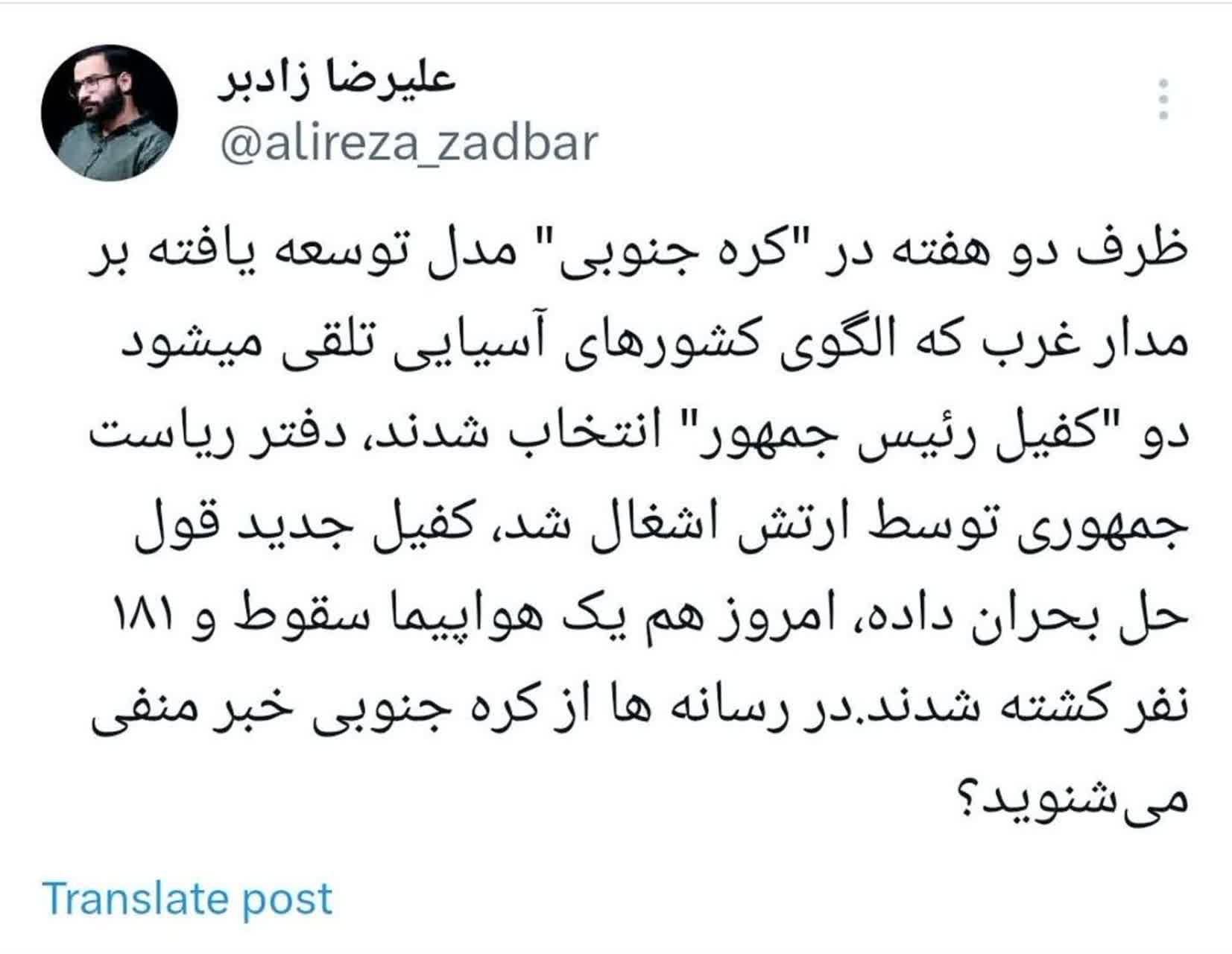 مقصودم این نیست که کره جنوبی نابود شد، خیر. مقصودم این است که کشورهای دیگر هم مساله و بحران دارند.
